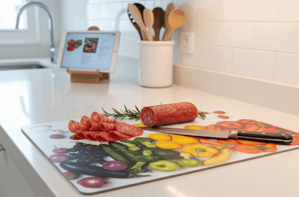 Il nuovo tagliere messo a punto da PRINT DUEMILA è un accessorio indispensabile per la cucina. Pratico ed essenziale, realizzato anch’esso in polipropilene, materiale idoneo al contatto alimentare e riciclabile al 100%. Dotato di base d’appoggio “antiscivolo”, stampato al rovescio in modo che la superficie di contatto con gli alimenti sia il solo polipropilene vergine, risulta molto funzionale nell’utilizzo, nonché igienico e sicuro. Il tagliere è disponibile in due misure ed è realizzato in polipropilene alto spessore.